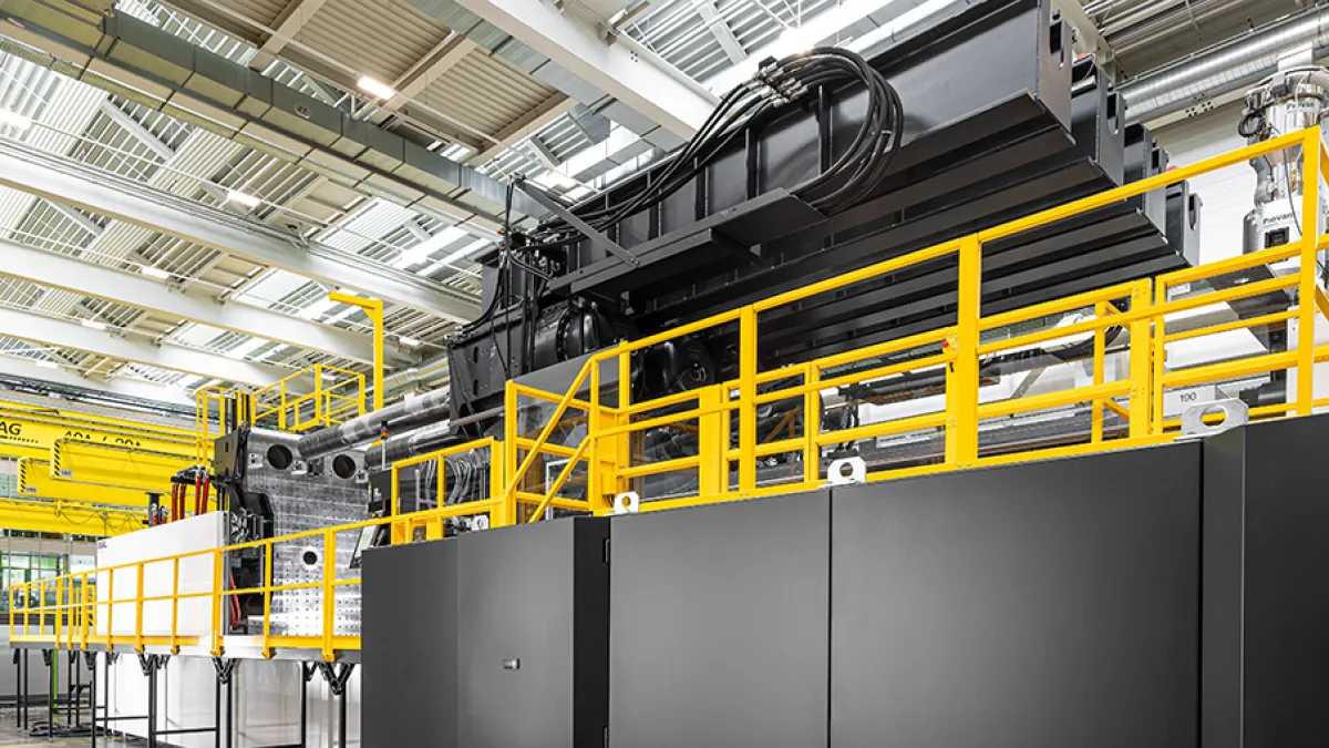 Die Spritzgießmaschine wurde speziell für Bauteile mit projizierten Flächen von mehr als 2,5 Quadratmetern konzipiert. Mit einer Schließkraft von 110.000 Kilonewton zählt sie zu den leistungsstärksten Anlagen ihrer Klasse. Die wirtschaftliche Fertigung großformatiger Komponenten erfolgt in einem integrierten Prozess, wodurch sich die Anzahl einzelner Bauteile reduzieren lässt. Dadurch entstehen neue Freiheitsgrade in Konstruktion und Leichtbau. Gleichzeitig eröffnen sich Möglichkeiten, etablierte Werkstoffe wie Metall oder Beton durch Kunststoff zu ersetzen.